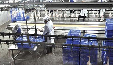 我公司年收購、屠宰、加工肉食雞2500萬只,年產(chǎn)產(chǎn)品6萬余噸,銷售收入近6億元,實(shí)現(xiàn)利稅2000余萬元。帶動(dòng)3500戶農(nóng)民養(yǎng)雞致富,安置農(nóng)村剩余勞動(dòng)力和下崗職工600余人就業(yè),間接帶動(dòng)4000人發(fā)展肉食雞產(chǎn)業(yè),年可創(chuàng)社會(huì)效益近億。